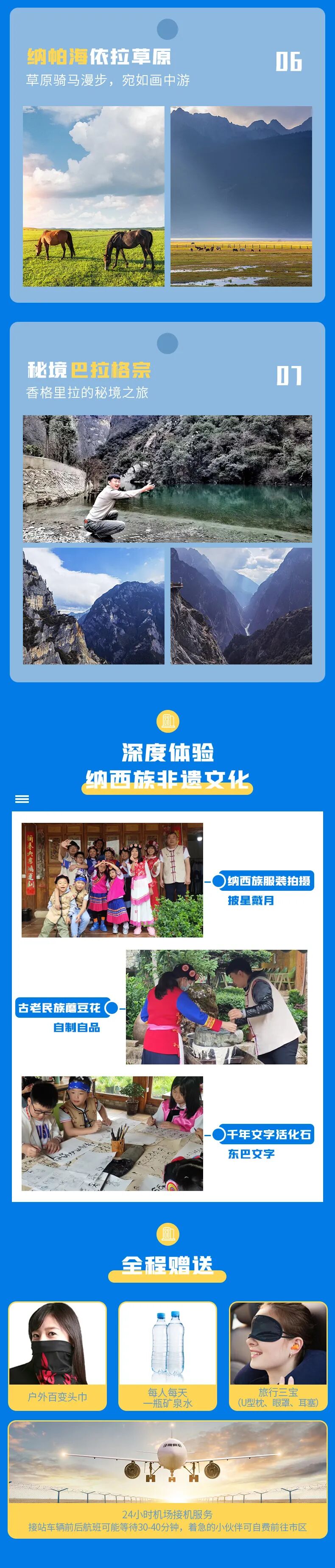 4.门票:泸沽湖门票、纳西族非遗文化体验费用、松赞林寺门票、巴拉格宗门票+区间车,纳帕海骑马费用。
