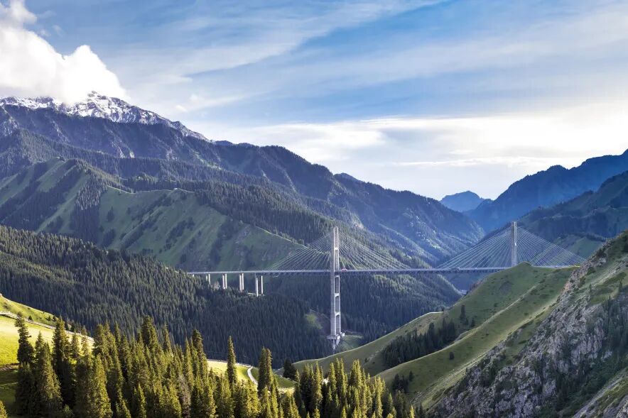 13:30 我们会看到一条雄伟壮观的大桥,这就是著名的【果子沟大桥】。