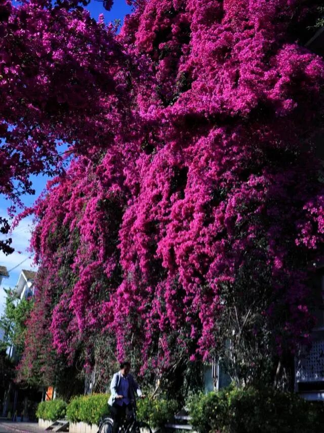 这棵花并不属于稀有花卉,其实就是平平无奇的三角梅,也叫簕杜鹃,福建、广西、海南、广东等地几乎每个城市都有,而云南更是全省栽种,但像这棵三角梅长势如此震撼的确实罕见。