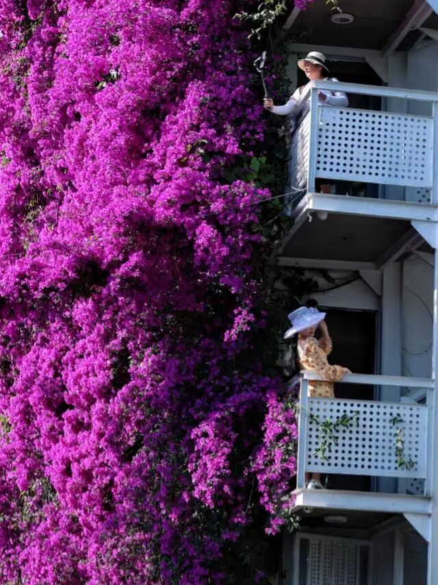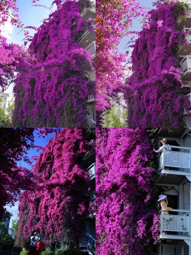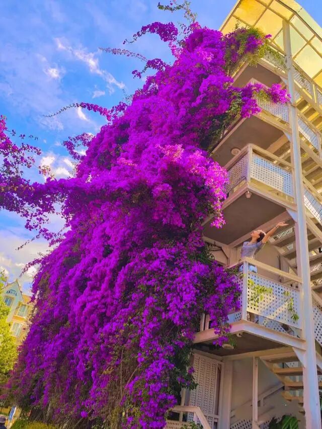 有网友说:这棵三角梅太秀了,整整五层,不光霸气,还诠释了真正的“鲜花瀑布”,更让人体验到了挂在空中的一片姹紫嫣红。