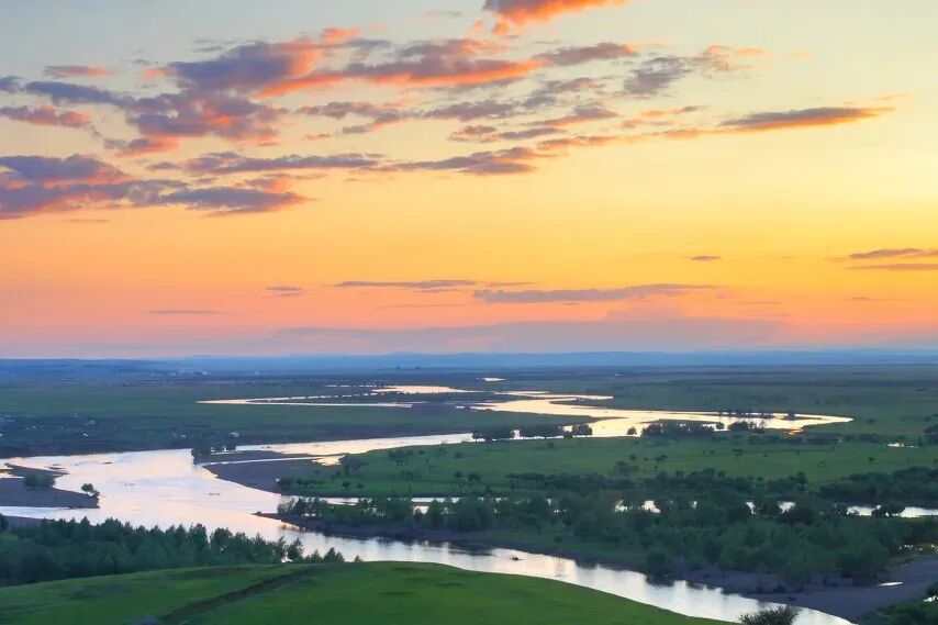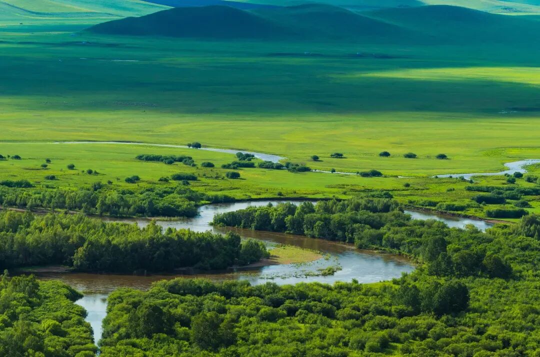 适时抵达亚洲第一湿地【额尔古纳湿地】,我们登高望远,眼前辽阔的草原一望无尽,蜿蜒曲折的根河,像是藏族女孩的长发般飘逸秀丽。