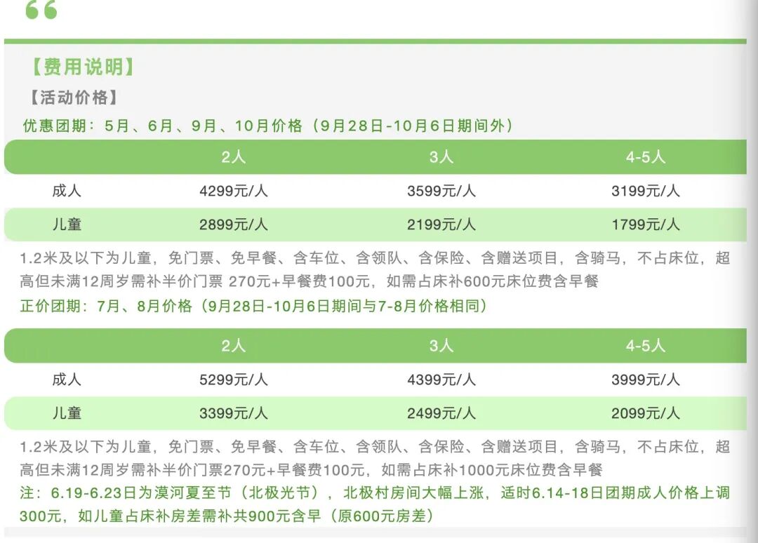 1.2米及以下为儿童,免门票、免早餐、含车位、含领队、含保险、含赠送项目,含骑马,不占床位,超高但未满12周岁需补半价门票+早餐费,如需占床补床位费(含早餐)