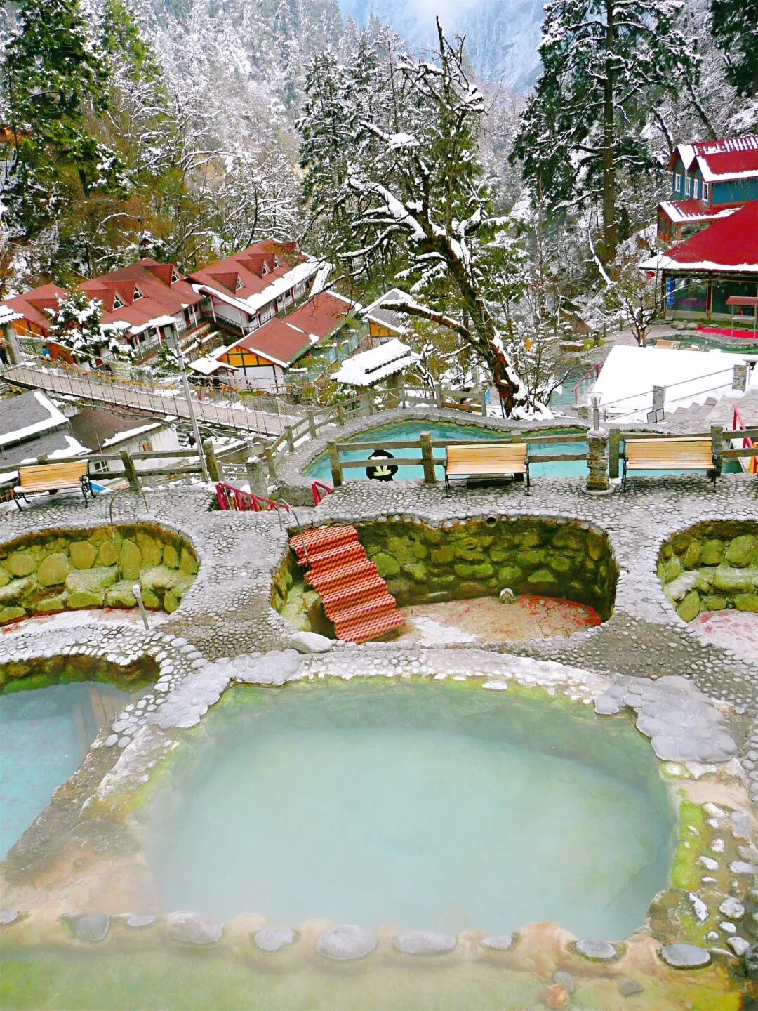3、海螺沟,贡嘎山下的冰川奇观,在大雪纷飞的时节,海螺沟温泉称得上是一绝。