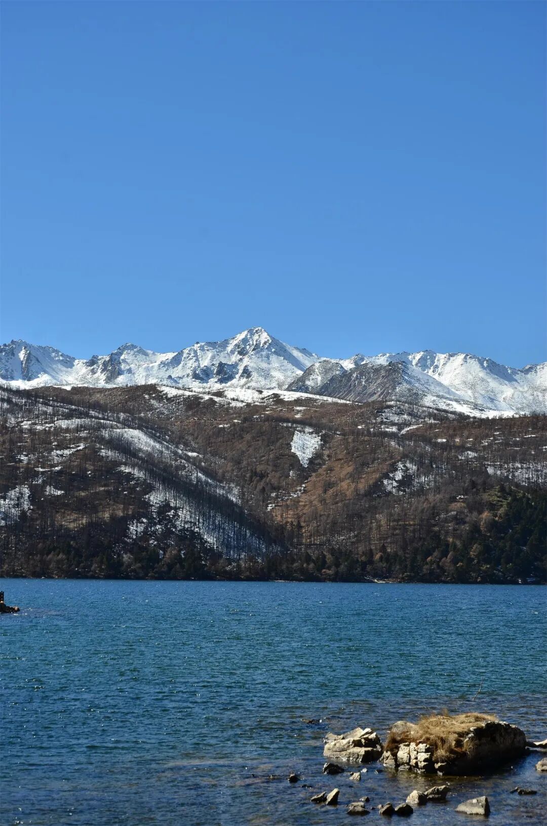 28、古乡湖——圣美秘境的醉人涟漪,清晨走在湖边,对面的雪山笼罩在清晨的薄雾之中,夹杂着淡淡的野花香气。像蒙了一层神秘面纱。