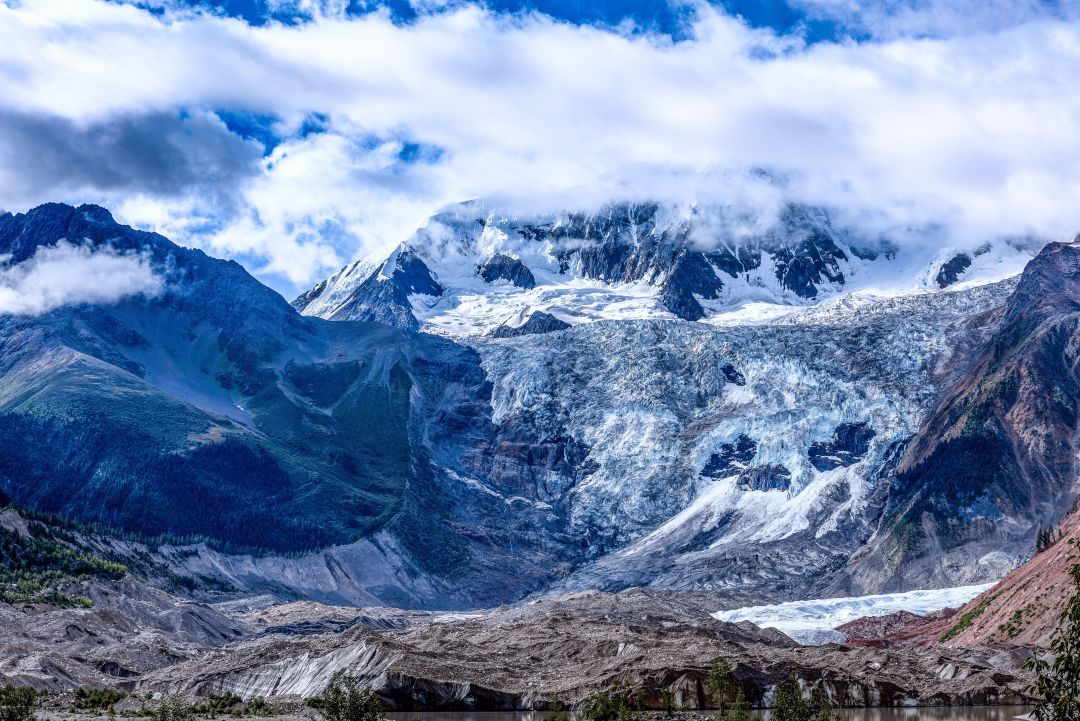 23、米堆冰川,雪藏深山的精灵,原始的雪山,清澈的河流,典型的海洋冰川,也是世界上最低海拔的冰川。