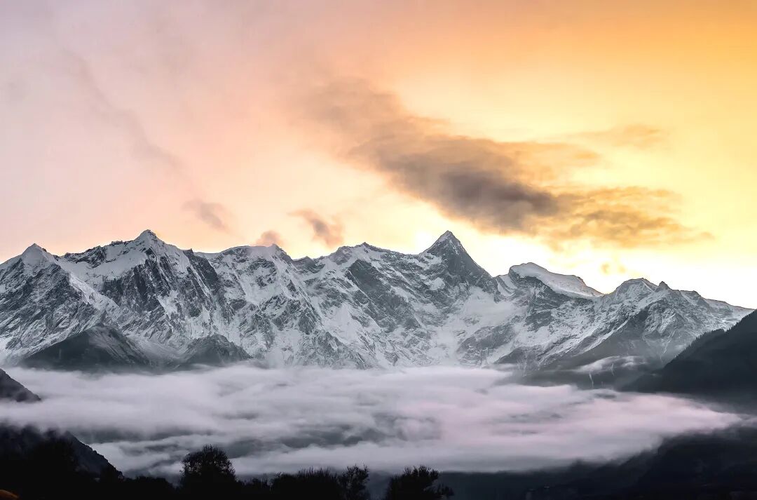 29、南迦巴瓦,西藏众山之父,峰体终年积雪,云雾缭绕,日照金山更是一绝。