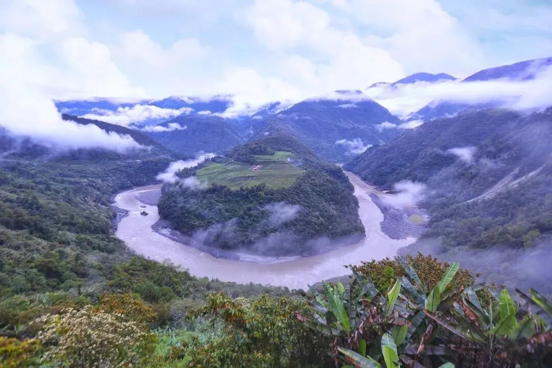 整个峡谷地区冰川、绝壁、陡坡、泥石流和巨浪滔天的大河交错在一起。它的壮阔,它的巍峨,可以用十个字来概括:高、壮、深、润、幽、长、险、低、奇、秀。