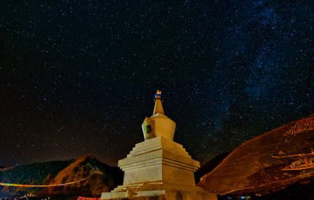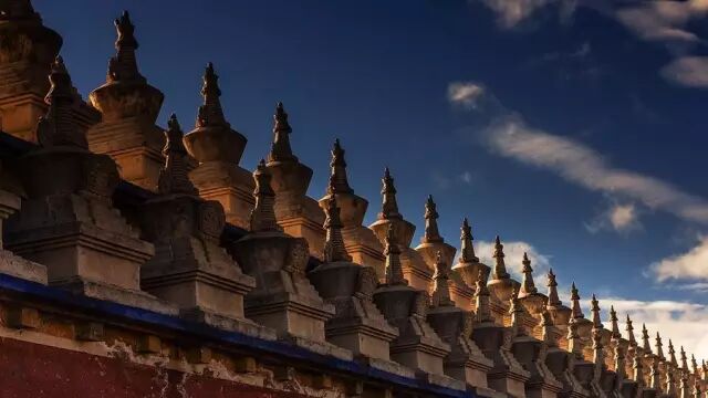 木雅金塔,又称十世班禅纪念塔,此塔是为了纪念十世班禅,追念他曾在此讲经布道而建。金塔外贴金箔,耗用黄金一百多斤,据说寺庙开光时,天空出现五彩祥云,七色光环。