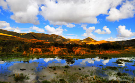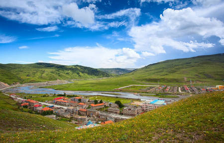 与草原交相辉映,在蓝天白云的衬托下,塔公草原更加美丽。