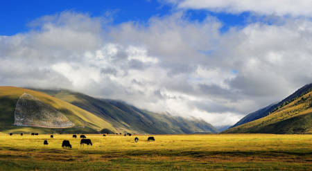走在塔公草原上大步前行,轻轻的呼吸,心中不住的赞叹,那一刻,内心满腔豪情,不知是因为湛蓝的天空离我那么的近,还是因为那种原始的粗犷奔放感觉如此亲近,总有一种想放声歌唱的冲动。