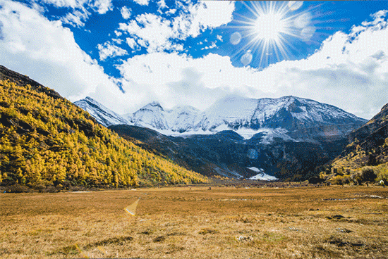 去稻城亚丁看雪山、万亩杨林、高山草甸、牧场湖泊······把视线放远便可仰望仙乃日、央迈勇、夏诺多吉三座神山,在阳光照耀下,你只想坐在草地中望着雪山发呆。