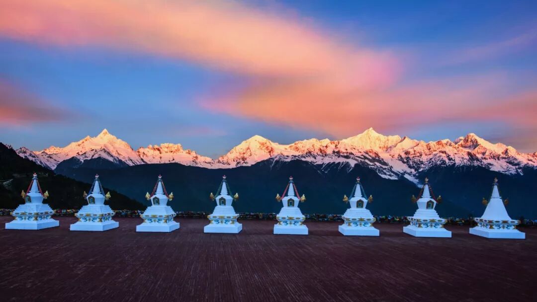 梅里雪山常年笼罩在雪幕与云层中,如果看到阳光洒在主峰卡瓦博格上,你就是雪山的有缘人,这就是著名的“日照金山”。