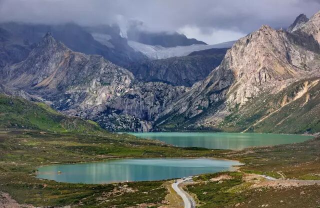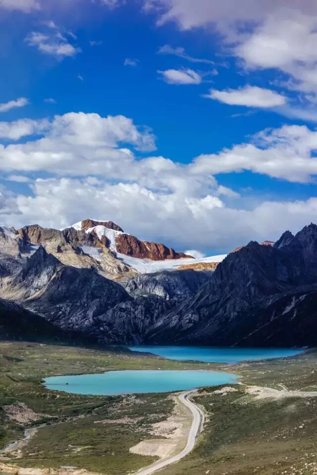 仓央嘉措说:洁白的仙鹤啊,请把双翅借给我,不飞遥远的地方,只到理塘就回。 »»» 海子山姊妹湖在川藏线上,有许多美丽的雪山圣湖,要说最令人印象深刻的恐怕非“姐妹湖”莫属。 姊妹湖也叫眼镜湖,周围是白雪皑皑的雪峰,静静地平躺在海子山上,像两个羞涩的少女。