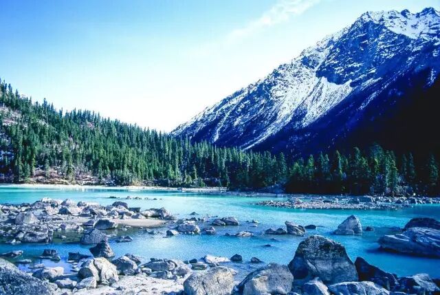 湖水湛蓝,清澈如镜,湖边是绿茵茵的草场、田园和村庄,山腰是茂密的原始森林,山顶是终年不化的积雪。 站在湖边,看着雪山与蓝天在湖面上的倒影,往往让人有一种置身仙境的错觉。
