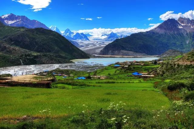 每逢春夏时节,花开成海、林立的雪山、点缀的小木房、潺潺的溪流,仿佛是陶渊明笔下的世外桃源,倒也不辜负“叫人不想家”的美誉。