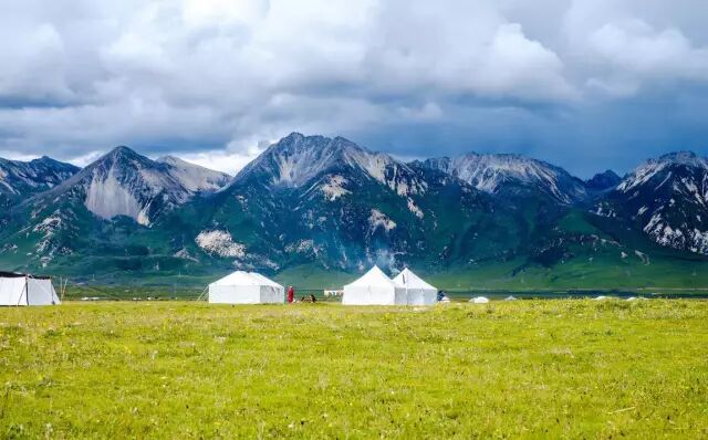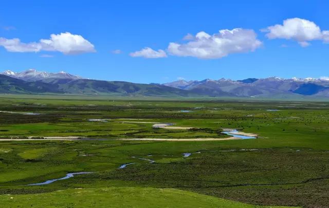 蔚蓝的天空、连绵的山峦、无垠的草甸、潺潺的溪流、山坡上觅食的牛羊、远处散落的藏族村寨、说是人间天堂,一点也不过分。
