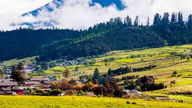 在满是悠闲牛羊与厚实草甸的稻城亚丁,小河静静流淌,从你的全世界路过,在香格里拉找到内心最柔软的地方。