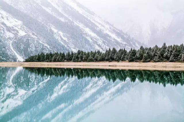 当阳光洒向湖面,湖水便在周围的雪山映衬下显现出色彩,幽然清冷。
