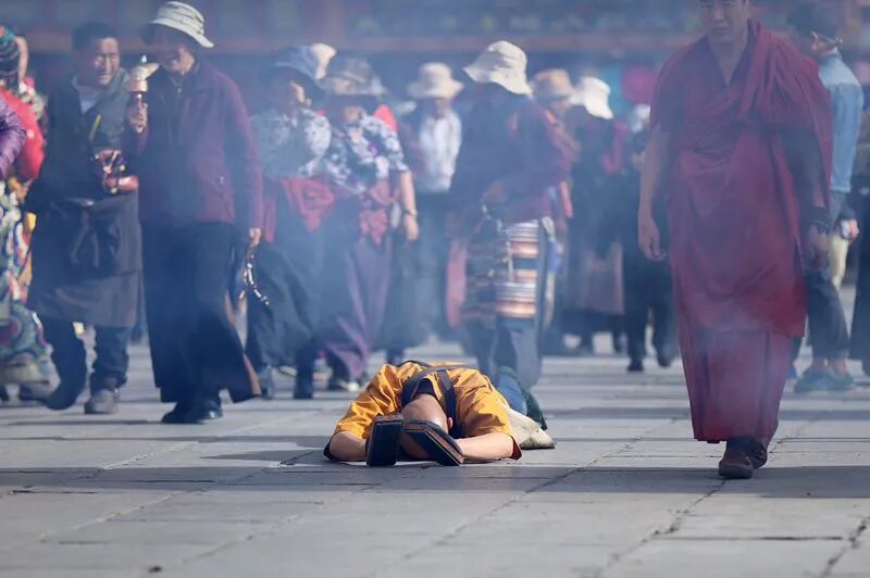 大昭寺是拉萨真正的中心,也是信徒朝圣的终点,在藏传佛教史上拥有极其崇高而圣洁的地位。 寺前终日香火缭绕,万盏酥油灯长明,留下了岁月和朝圣者的痕迹。