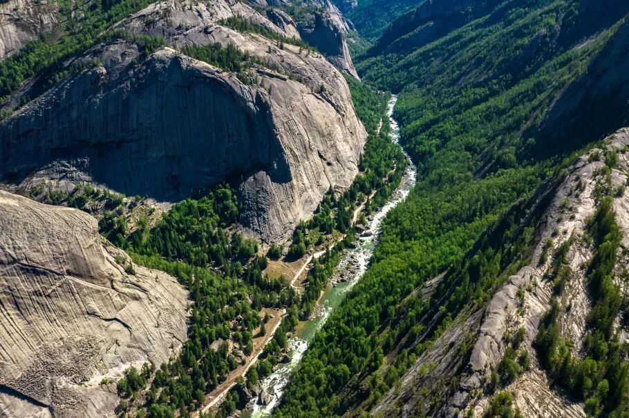 11:30 我们会走进新疆最著名的【独库公路】中段,山间是奔流的河水,山坡上是平缓的草场,阳光落在草地上,给草场罩上了一层金黄。
