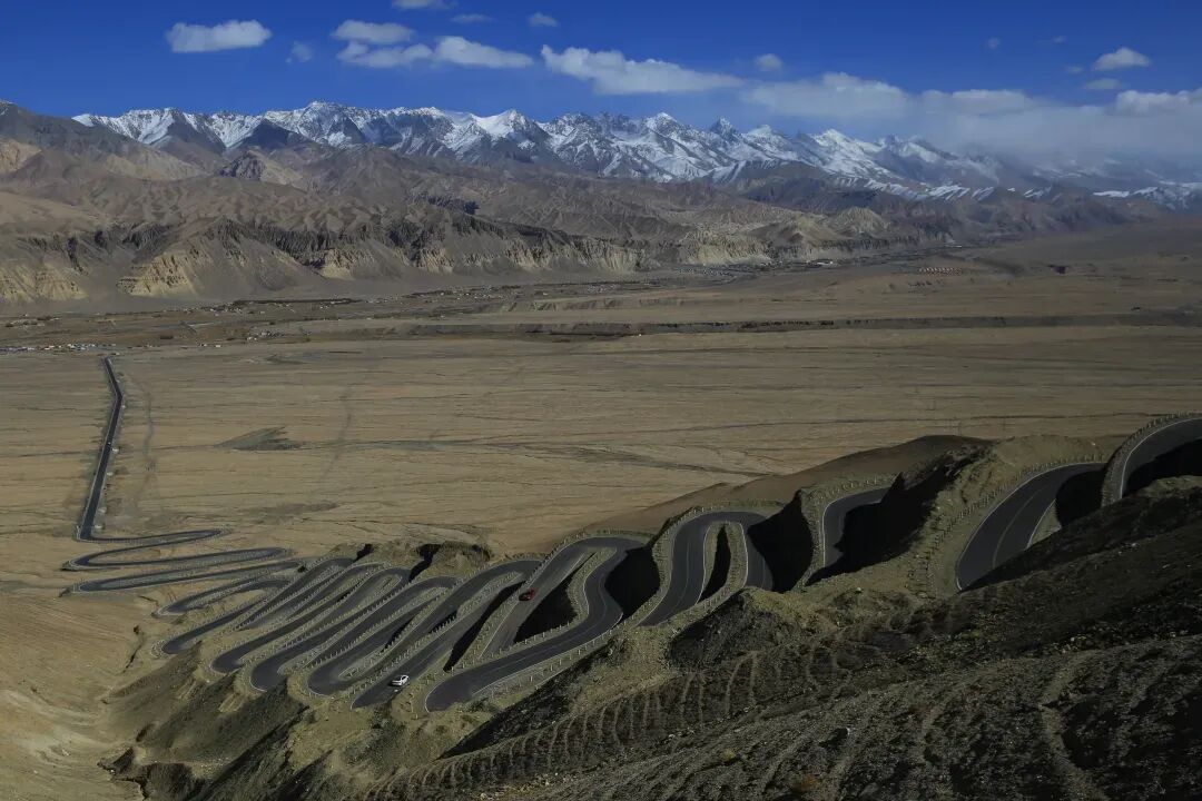 08:30:抵达【盘龙古道】,全长75公里,有超过600个S的弯道;众多弯道180度,甚至270度,盘龙古道如巨大的游龙一般,盘旋在约4100米的帕米尔高原上,与带着颜色的山体完美结合。蜿蜒曲折的道路和壮阔的地址面貌形成了一道别具一格的风景,今日走过了人生所有弯道,从此人生尽是坦途。