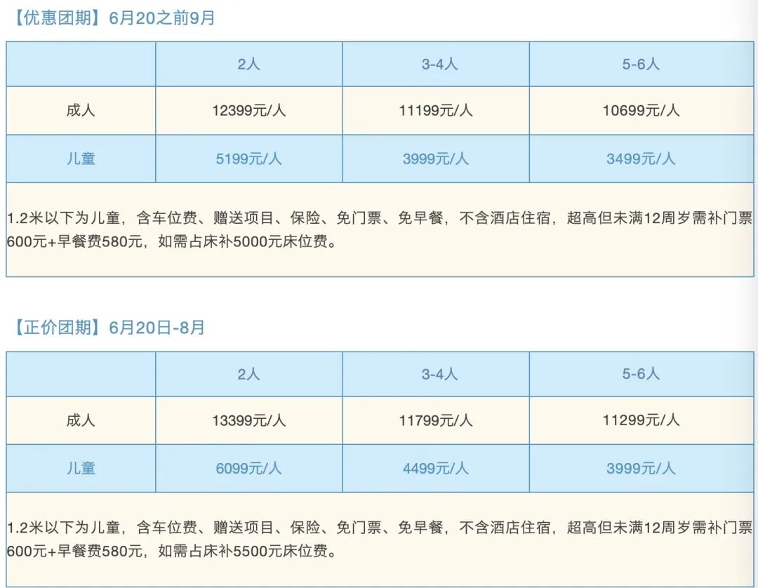3、单房差:单房差:全程默认安排2人一间,如有单人需补单房差:优惠团期5000元,正价团期5500元。