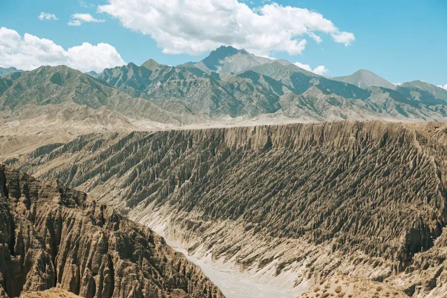 12:00抵达【独山子大峡谷】。经过河水亿万年的怒吼奔腾和雨水的冲刷、风雪的蚀雕,成就了一处让人惊叹的流水侵蚀奇观。