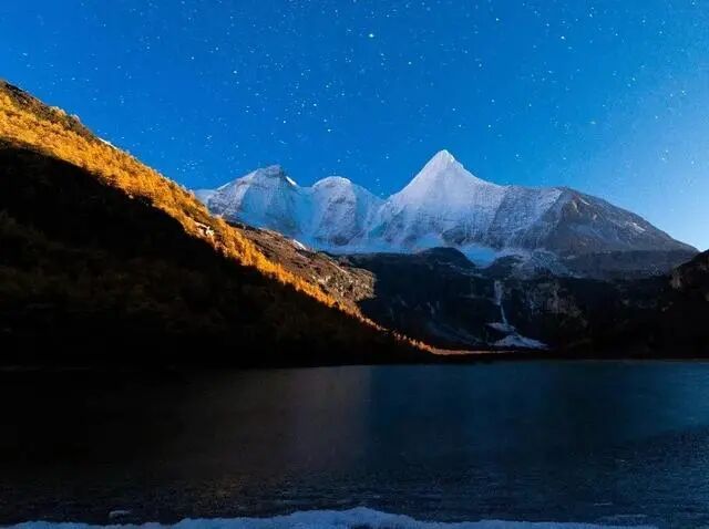 月光晦暗,灯光晦暗,流云瓦解了夜晚的森严,世界就这样在眼前斑斓。点点星光、穿梭银河,我们相遇在稻城,从此凛冬散尽,星河长明。
