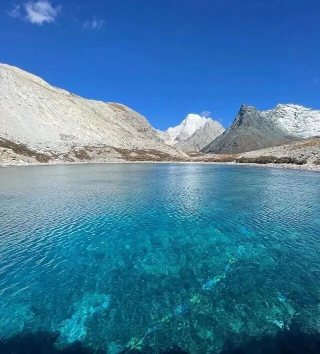 山水辉映,山是水的床,水是山的魂。山在水中流动,水把大山的寄托带向远方。水天一色,水光波动,阵阵涟漪,倾诉着稻城的“秘密”。仔细听、仔细看……