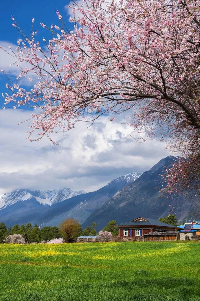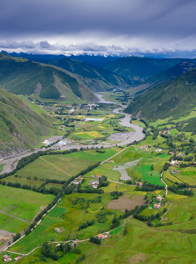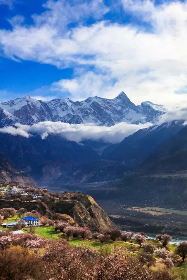白桦林、皑皑雪山、游走牧群、藏族村寨