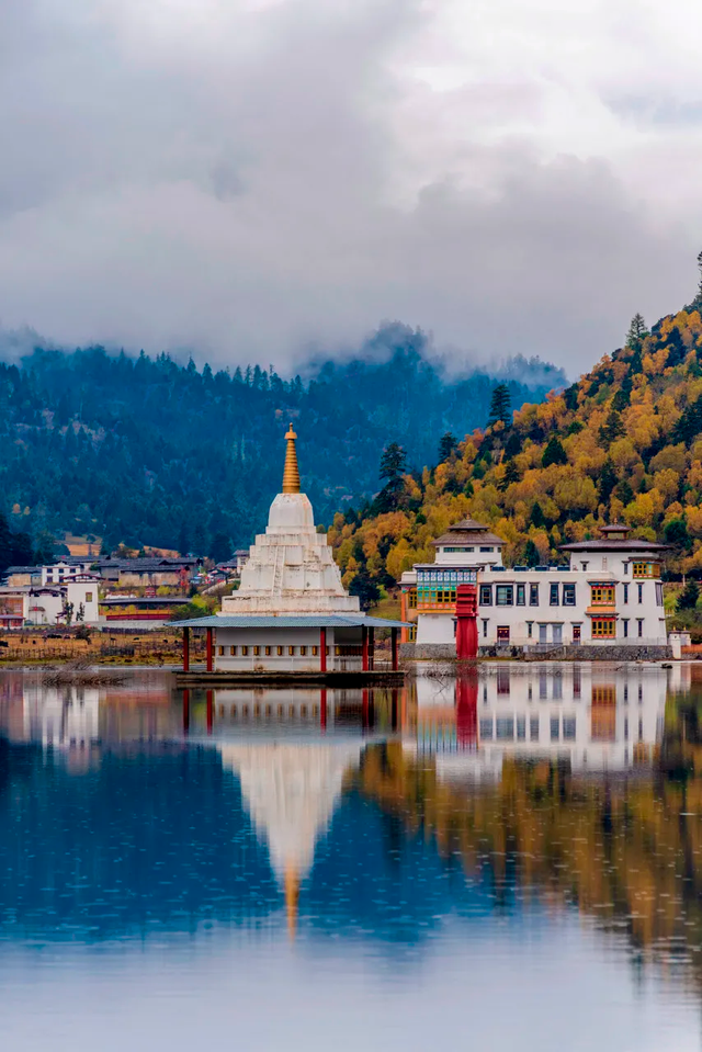 无垠草原、弯弯小溪、金黄柏杨,连绵起伏的山峦,风格独特的藏寨散落其间,不愧被称作“摄影天堂”。