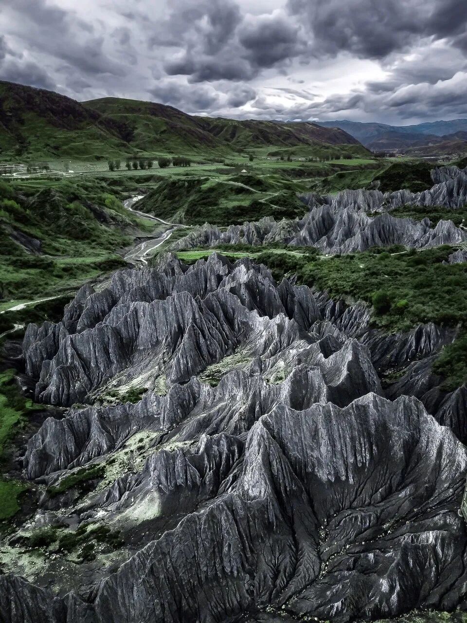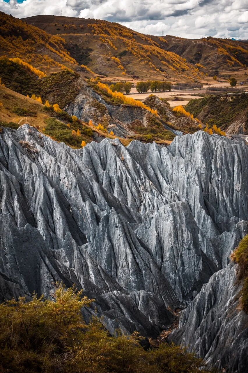 由弱变质的炭板岩构成的这座如恶魔之境的黑色石林,让它成为了川西景观中的一个异类,若逢雨雾时节,石林远远看去如同泼墨画般层叠渲染,这时将无人会不惊叹于大自然的鬼斧神工。