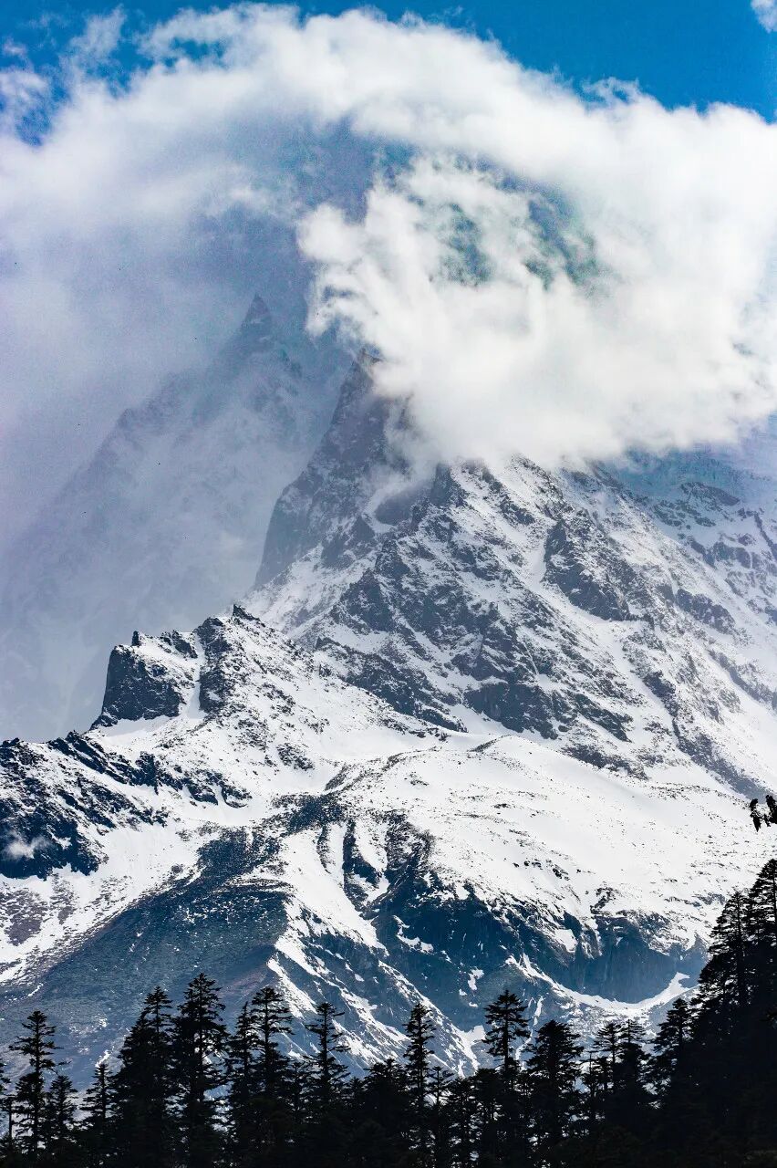 “蜀山之王“贡嘎,主峰海拔7556米,位于甘孜州川藏南线上。万山罗伏,千峰揖拜,45座海拔6000米以上的雪峰围绕着贡嘎主峰,与其共同组成了巍峨壮丽、气势磅礴的雪山群。