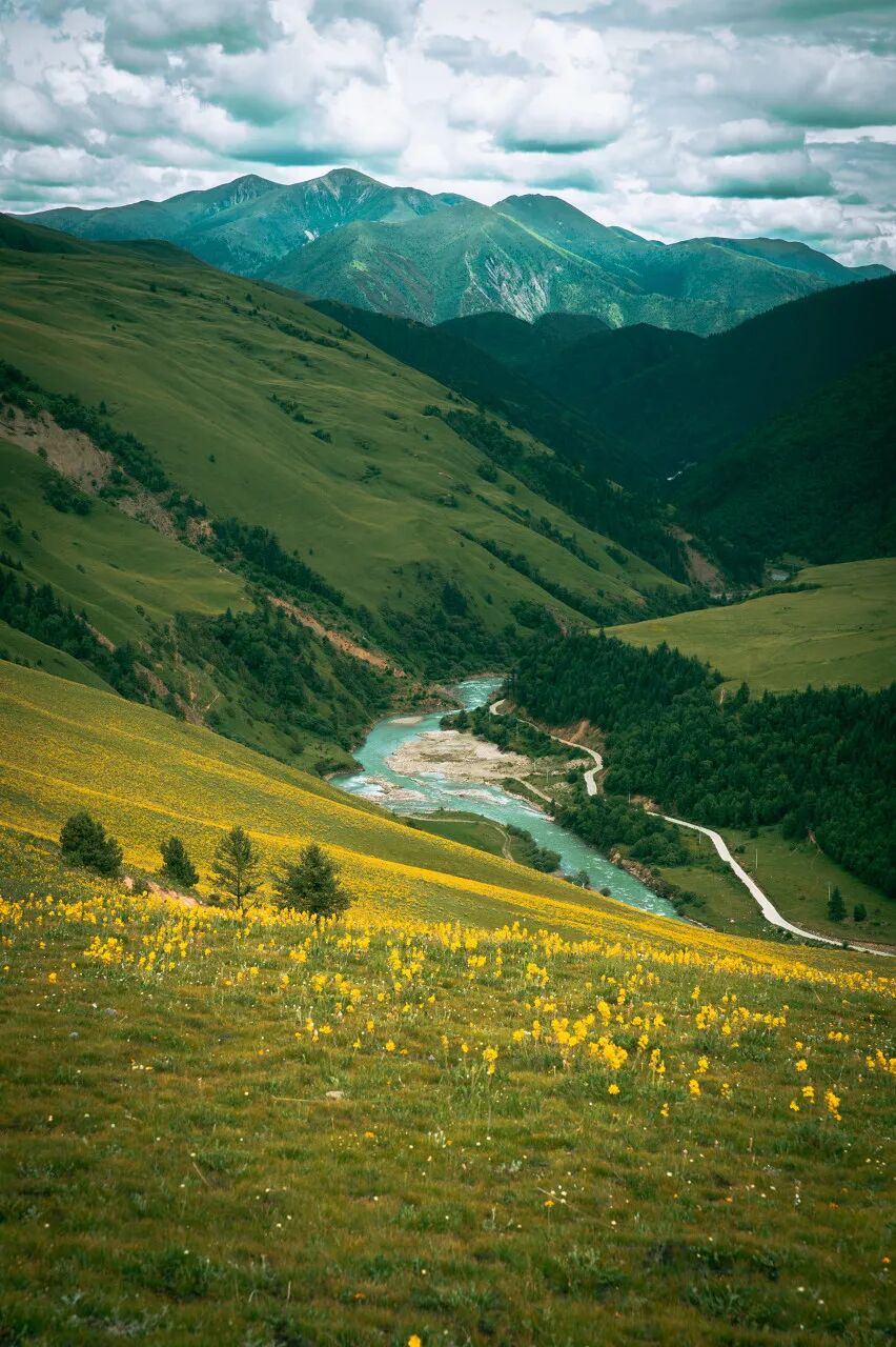 自驾穿过新都桥会有穿越绿野仙踪的梦幻之感,在这里能邂逅苍翠高山、柔软草甸、绚烂野花。造物主会将新都桥最美的样子一路呈现给你,让你恍若进入世外桃源。
