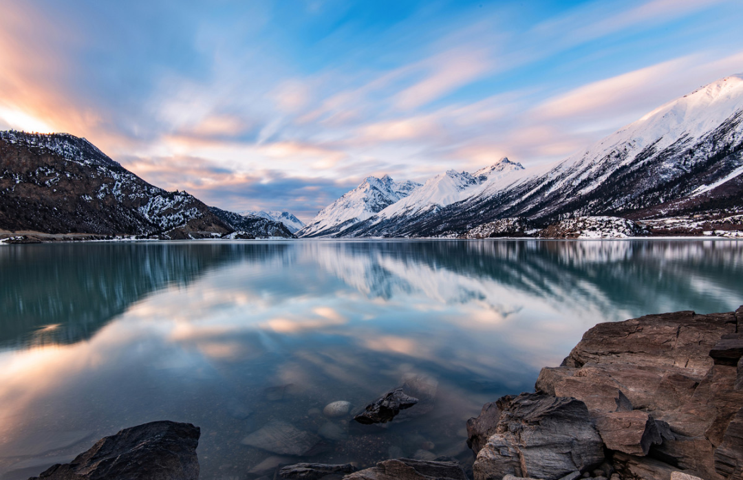 然乌湖北面有著名的来古冰川,冰川延伸到湖边,每当冰雪融化时,雪水便注入湖中,使然乌湖经常保有丰富的水源。