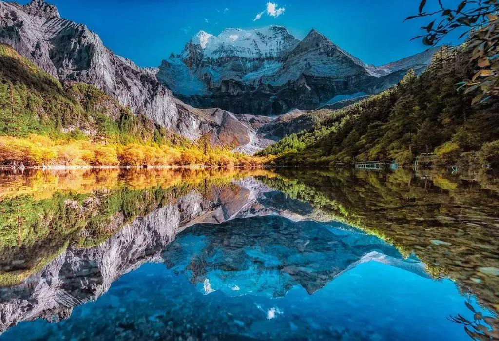 南迦巴瓦几乎满足了人们对于雪山的所有美好想象,山顶冰川高耸、形状俏丽,山间常有云雾飘荡,山下是植被茂密的江南风光。如果说它是中国最美的山峰,绝对赞成!