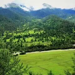 鲁朗林海位于林芝地区八一镇以东约80km的川藏公路上,海拔约3700m,这是一片典型的高原山地草甸狭长地带,林海由两侧青山中的灌木丛和茂密的云杉、松树组成,树木以青冈为主,林海中间则是整齐划一的草甸,溪流蜿蜒其中,此外还有大量鸟类栖息于此。