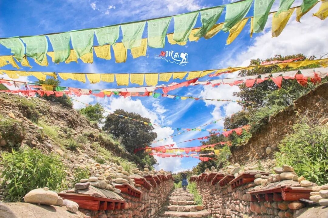 苯日神山是藏区本土苯教的圣地,山坡上林木茂密,四季鲜花盛开,林中还有供奉着苯教创始人辛绕米沃的古寺,年年都会有信徒们来这里朝圣。