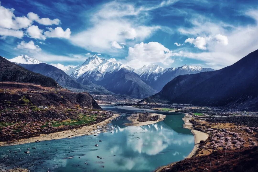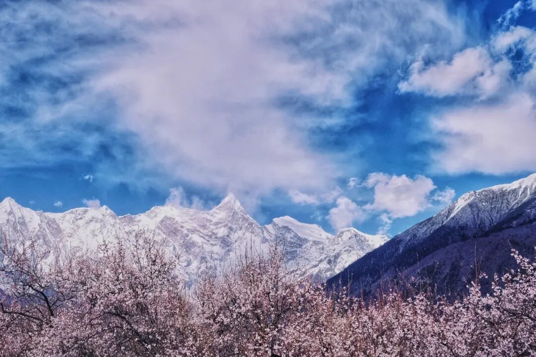 南迦巴瓦峰·是林芝地区最高的山,是全球海拔排名第15的高峰,被《中国国家地理》评为“中国最美雪山”。 ·这里山顶冰川高耸、形状俏丽,山间常有云雾缭绕,而山下则是植被茂密的西藏江南,景色优美。 ·这里每年春天会有桃花开放,拍摄花朵掩映下的皑皑雪峰,是很多摄影师的最爱。