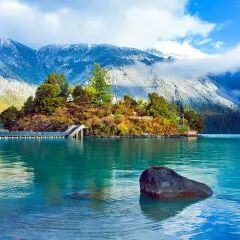 巴松措湖的水色会根据昼夜时间的不同,在浅绿和深绿之间来回变化,在阴天和晴天,冬天湖面和冰面会呈现出多变的颜色。你可以搭乘环湖游船来到湖心,一天当中不同颜色的湖水,都在你眼前尽情展现。门票:5月-10月:120元/人;11月-次年4月:60元/人;游船票:150元开放时间:8:30-20:30