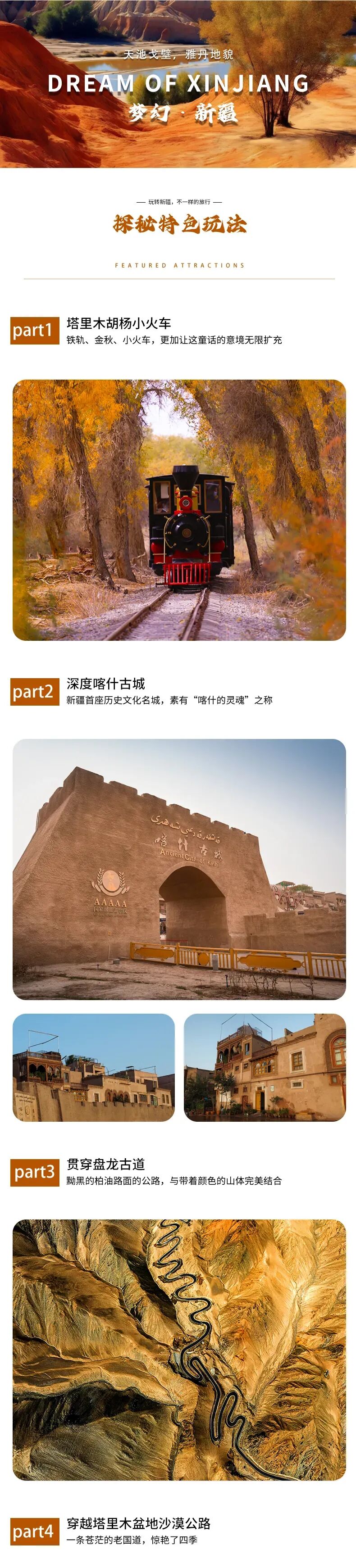 【特色玩法】:深度喀什古城、贯穿盘龙古道、十二木卡姆表演