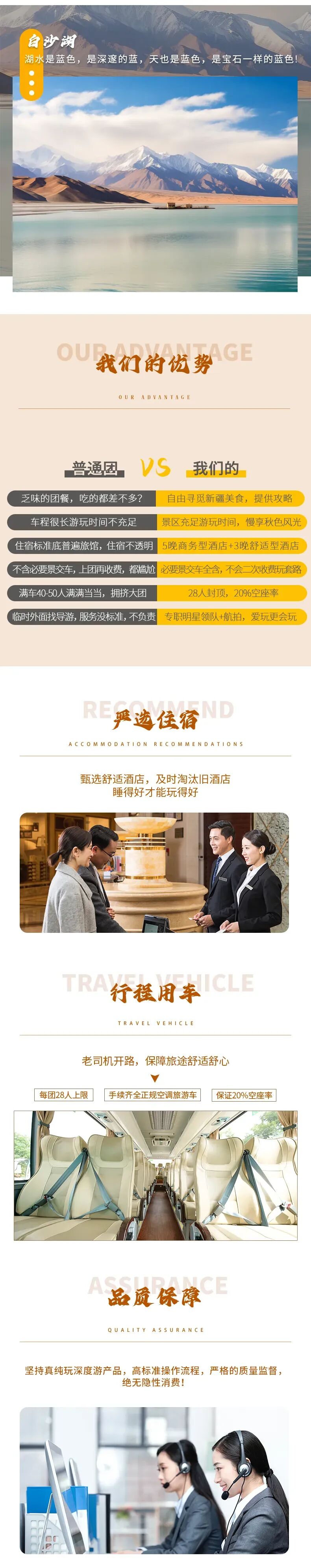 【品质保证】:坚持纯玩深度游产品,全程一手操作,绝无隐性消费;【明星领队】:团队满11人派领队兼航无人机航拍师;带你引领快乐,嗨翻西域;