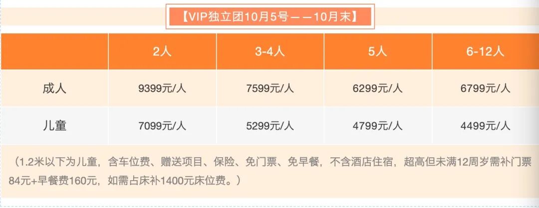 3、单房差:单人报名全程默认安排拼房,不收单房差(1大1小报名不保证拼房,未拼上房则需补房差),如要求单住需补单房差:1400元