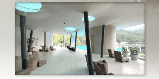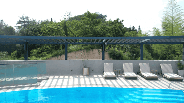 五层的景色更加宜人,棕榈树搭配蓝天白云和泳池,确实很有度假的味道,而且人不算多,干净又舒服,山水之间,让人有种豁然开朗的感觉。