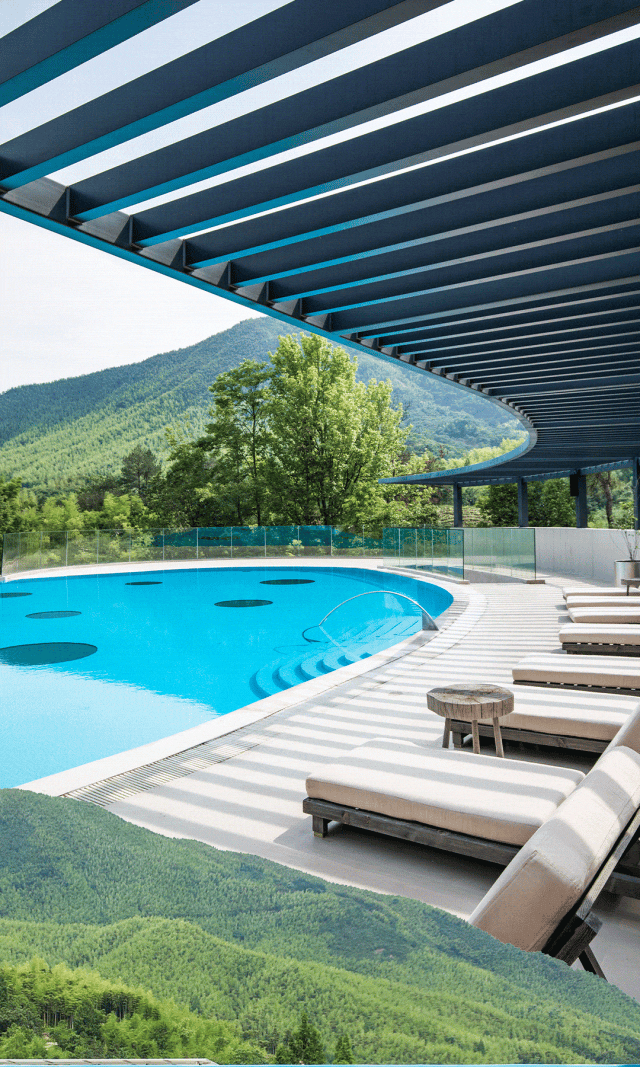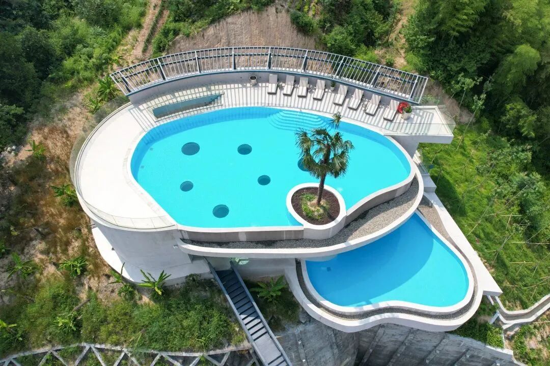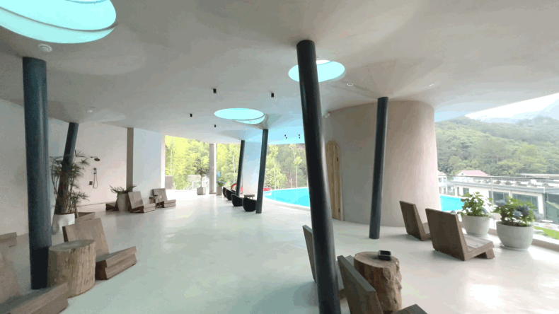 再往上四层和五层就是超大泳池,很有氛围很有惬意,彷佛来到了小巴厘岛。四层的比较浅一点,还配有淋浴区域,超级方便。