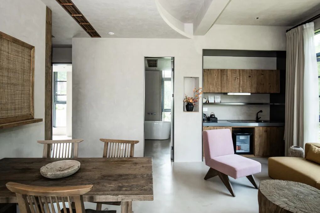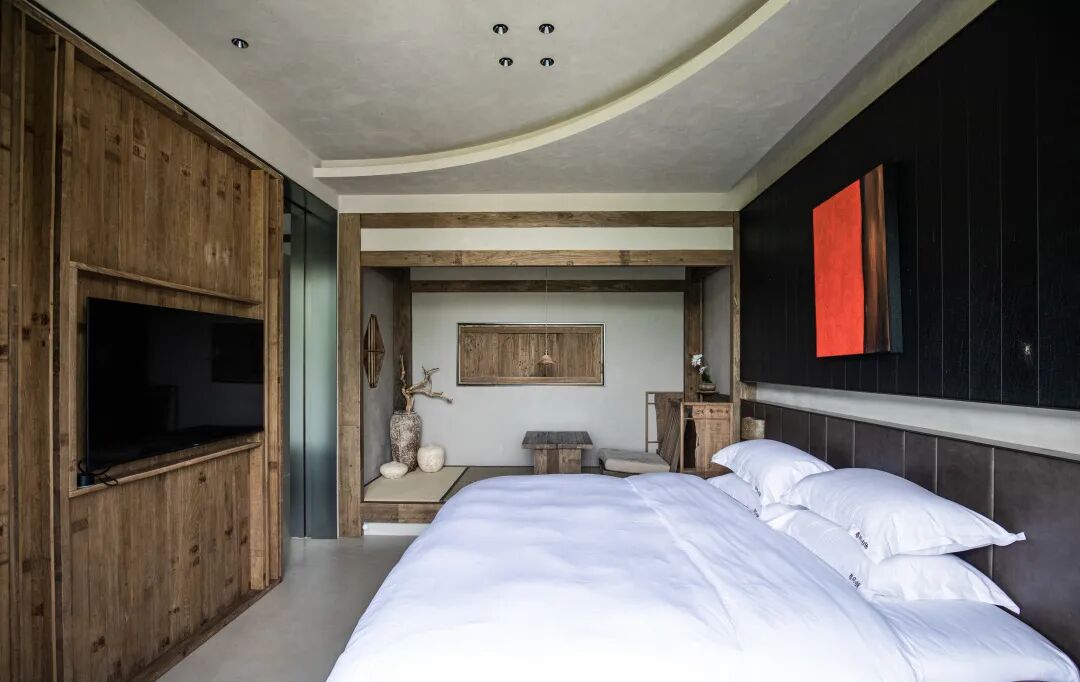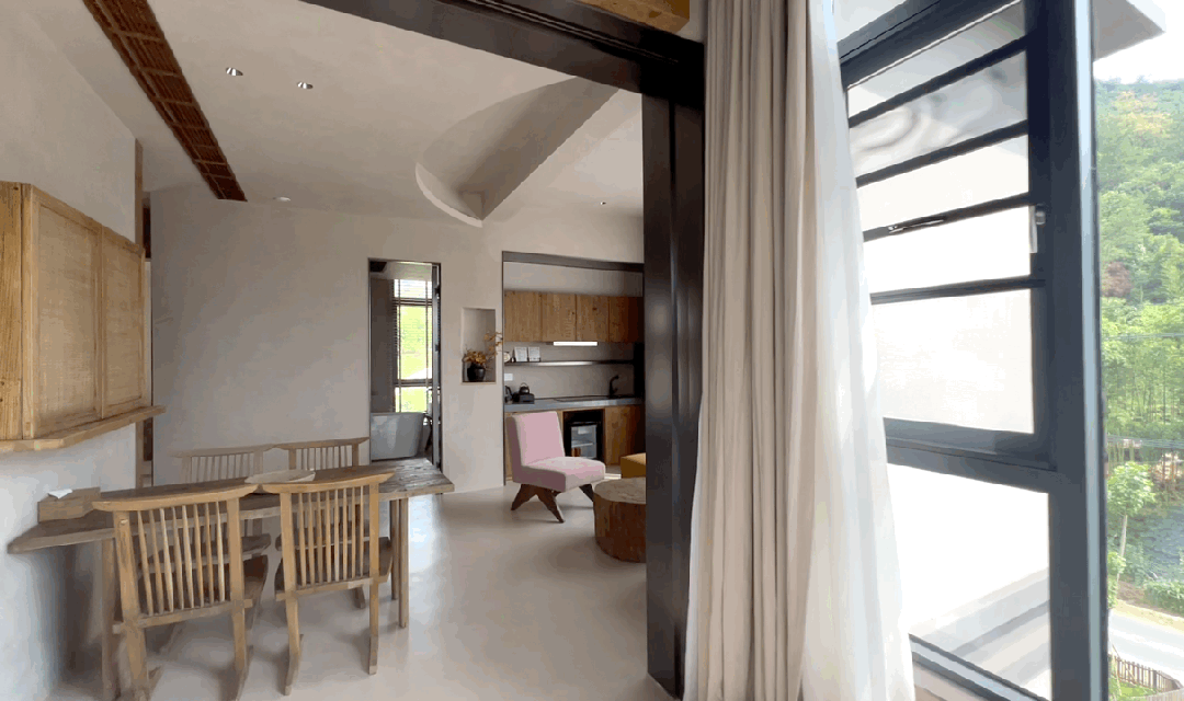 整个民宿一共是6层,由古村宅改造而成,民宿外面的朴实村庄和高格调侘寂风的室内搭配,反而收获了意料之外的美感。