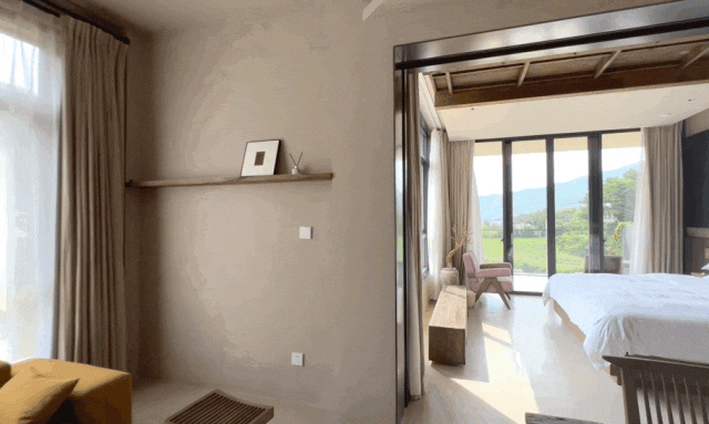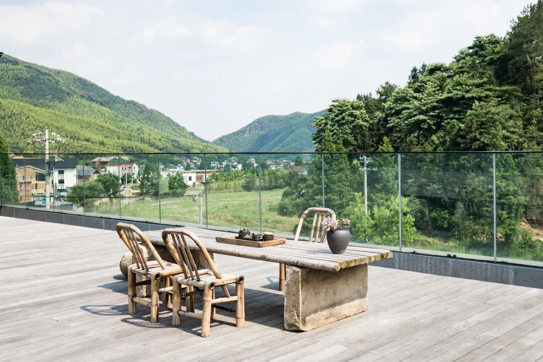 面朝竹林云海,入夜赏星月,在三层的大露台上就能览近山间的林海森森。坐在竹椅上泡一壶茶,呼吸清新的空气,这样的避世生活相信没有人可以拒绝。