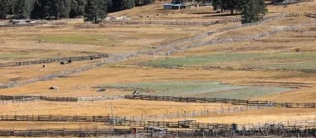草地上,新建了几处草地设施,如藏式风格的厕所,周围围着特制的栅栏,这些栅栏把不同的草地围起来,形成不同的区域,看起来差别很大。