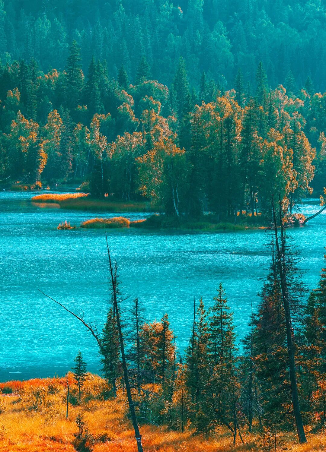 小黑湖是从禾木徒步前往喀纳斯湖的必经之路,这里的秋色极美。