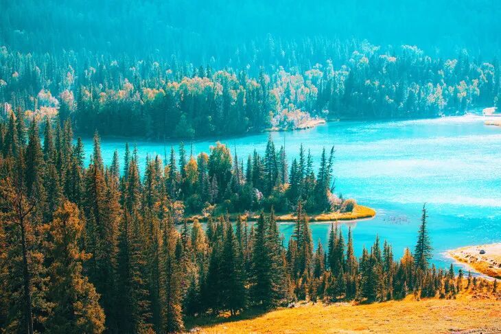 喀纳斯湖,位于新疆区阿勒泰地区,“喀纳斯”是蒙古语,意为“美丽而神秘的湖”。